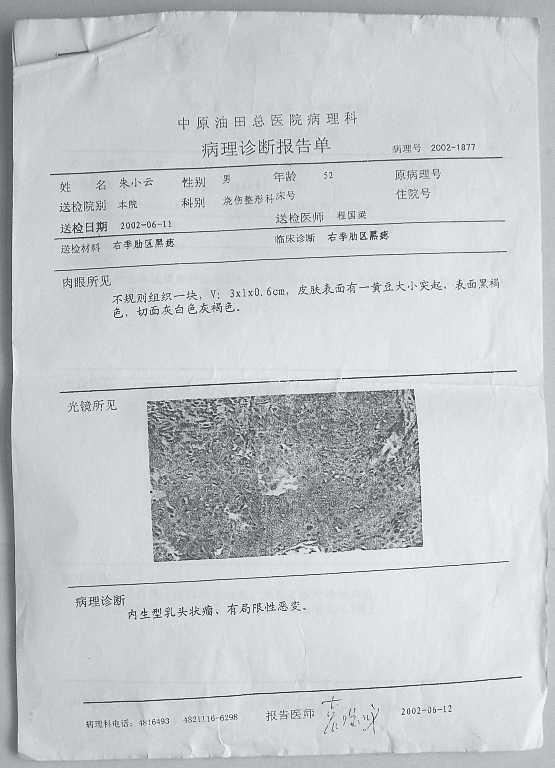 化验单出来了,结果是这样:“内生型乳头状瘤,有局限性恶变”。